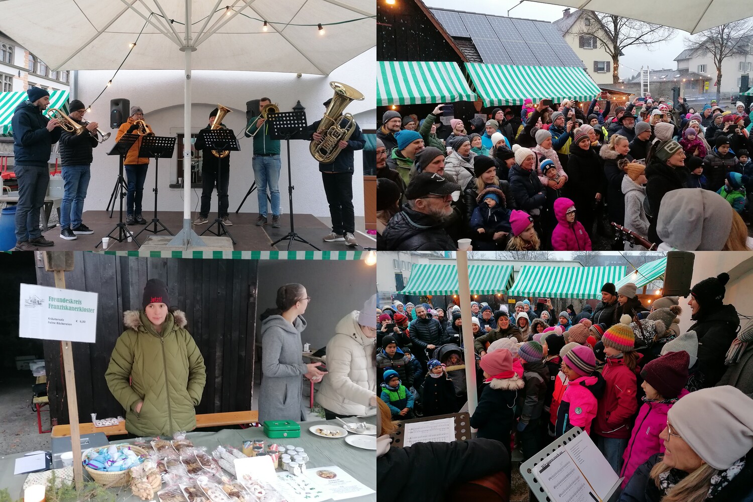 Vereine und Gruppen unserer Stadt und Pfarre wirken mit wie die Funkenzunft Rungelin, die Kolpingfamilie, der Imkerverein, die Jugendgruppe der Pfarre Heilig Kreuz, das Seniorenteam der Pfarre, die St. Antoniusbruderschaft Rungelin, die Jungbauernschaft Bürs, Klosterfreunde und die Jugendgruppe Legio Maria. Es gibt kleine selbstgemachte Weihnachtsgeschenke sowie Kaffee, Kuchen, und Imbisse mit köstlichen Getränken. Musikalisch Umrahmt wird dieses Adventmärktle wieder von den CantaKids des Pfarrkindergartens Hl. Kreuz, dem Franziskanerchor und einem Bläserensemble der Stadtmusik Bludenz.